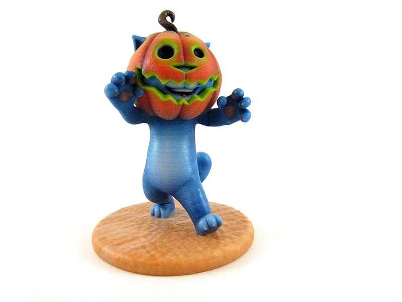 ColorJet Printing builds up the model from bottom to top, layer by layer. A roller puts a thin layer of powder on a platform and a print head places tiny drops of glue at specific locations, printing a thin layer of your model. The platform lowers and the roller spreads another layer of powder. The coloring is done by combining 4 different pre-colored types of glue to match the color requested. After the printing process, the model is brittle but is strengthened by putting it into superglue. A UV coating is sprayed on it to prevent decoloration by sunlight.
